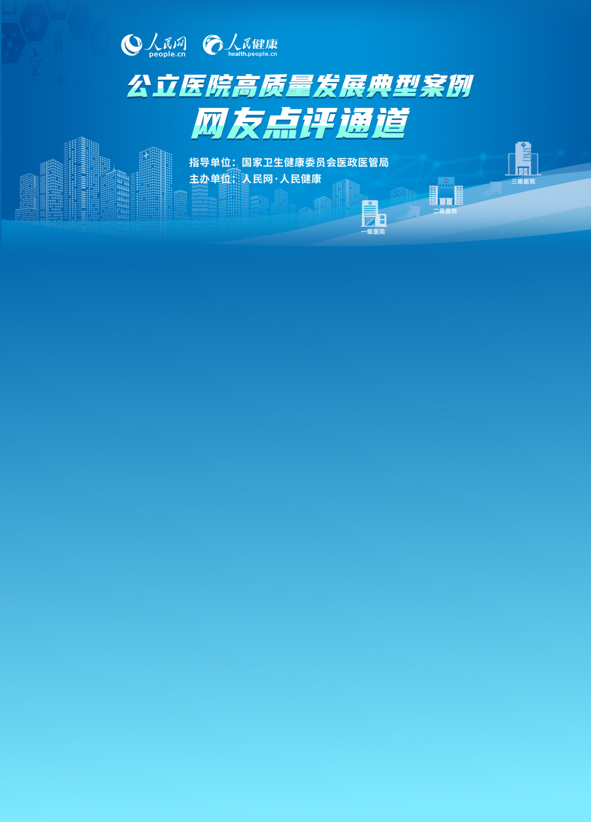 “公立醫(yī)院高質(zhì)量發(fā)展典型案例征集展示活動2020年總結(jié)表彰大會”將擇期于湖北省武漢市召開。 為推動我國公立醫(yī)院高質(zhì)量發(fā)展,提升醫(yī)療服務(wù)質(zhì)量水平,總結(jié)推廣先進(jìn)經(jīng)驗,做好典型宣傳工作,人民網(wǎng)·人民健康在國家衛(wèi)健委醫(yī)政醫(yī)管局指導(dǎo)下,開展2020年公立醫(yī)院高質(zhì)量發(fā)展典型案例征集展示活動。 自活動啟動以來,已在全國范圍內(nèi)共收到1000余份案例,并在近日開啟了網(wǎng)友點評通道(http://m.wan666.net/GB/26466/431463/434952/index.html)已開啟,入圍作品現(xiàn)已在人民網(wǎng)·人民健康官方平臺進(jìn)行網(wǎng)絡(luò)展示。
