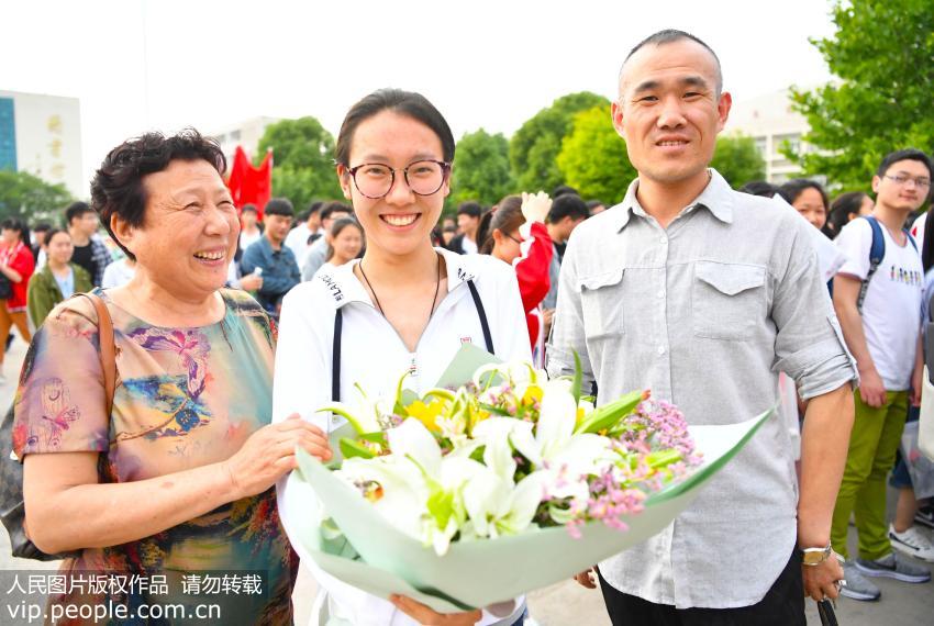 點擊下載本組圖片 6月8日,高考結(jié)束后,在安徽亳州市第一中學(xué)考點,一名考生收到親人送的花束。(劉【詳細】