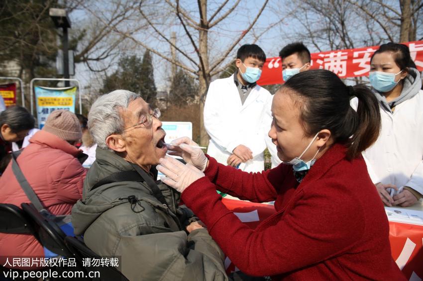點(diǎn)擊下載本組圖片 醫(yī)務(wù)人員給老人義務(wù)看牙。(陳曉根/人民圖片) (聲明:凡帶有“人民圖片”字【詳細(xì)】