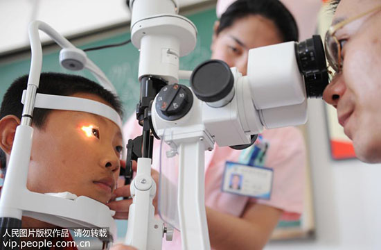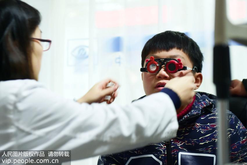 點擊下載本組圖片 浙醫(yī)二院眼科中心的醫(yī)生正在為一名少年試戴矯正鏡片。(李忠/人民圖片) (聲【詳細】