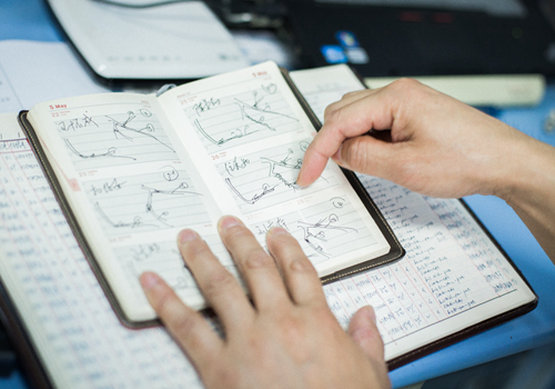 顧承雄打開小冊子,里面是一個個由他親手勾畫的冠狀動脈,上面的各種符號標(biāo)記代表著病變位置,嚴(yán)重程度,處理方案等。