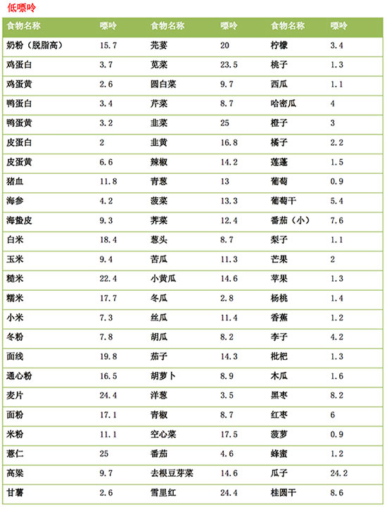 在烹飪食物過程中也要掌握適當(dāng)?shù)臓I(yíng)養(yǎng)知識(shí),盡量選擇低嘌呤食物(嘌呤含量低于25mg/100g)。對(duì)于那些嘌呤含量高的食物如肉類等,可先將肉煮熟去湯后再食用。常見的低嘌呤食物參照下圖: