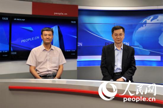 中國疾病預防控制中心免疫規(guī)劃中心副主任崔富強(左)、首都醫(yī)科大學附屬北京友誼醫(yī)院肝病中心主任賈繼東(右)做客人民網(wǎng)。(人民網(wǎng)記者韓淑賢 攝)