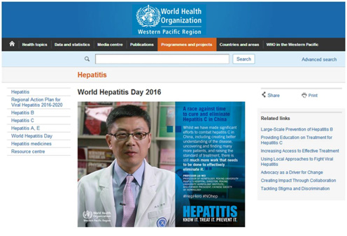 直接作用抗病毒藥物顯著提高了丙肝治愈率,并有可能治愈所有丙肝患者。為了幫助丙肝患者在中國盡快獲得這些新的治療藥物,魏來教授率先呼吁政府,直接抗病毒藥物對于消滅中國丙肝的重大意義。他與世界衛(wèi)生組織一起呼吁中國食品藥品監(jiān)督管理總局(CFDA)加快直接作用抗病毒藥物的審查過程。努力終于有了回報,2016年4月,CFDA史無前例地宣布,將給12種直接作用抗病毒藥物優(yōu)先審查資格。