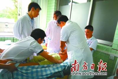 在大眾眼里,康復(fù)治療是一個簡單、機(jī)械而又漫長的理療過程。近兩年,廣東省連州市人民醫(yī)院康復(fù)醫(yī)學(xué)科(頸肩腰腿痛?疲┙Y(jié)合中醫(yī)手法,開展研究的“手法復(fù)位聯(lián)合經(jīng)皮球囊擴(kuò)張椎體成形術(shù)”(簡稱PKP手術(shù)),能夠使患有椎體壓縮性骨折的病人快速康復(fù)起來。由于該手術(shù)類似于“混凝土灌漿,使受損部位得到加固”,因而被形象生動地稱為“打骨水泥”。