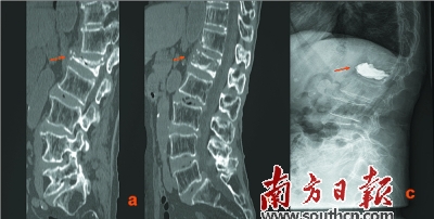 梁木榮說:“該患者年紀(jì)大、腰椎壓縮程度重,受壓縮的椎節(jié)被壓扁得只剩下1/4,極大地增加了該手術(shù)的難度,很多醫(yī)生都措手無策!倍届厢t(yī)生卻具有豐富的臨床經(jīng)驗,他采取了中西醫(yī)結(jié)合的辦法,先對患病椎體行手法復(fù)位,復(fù)位成功后,再進(jìn)行PKP手術(shù)。