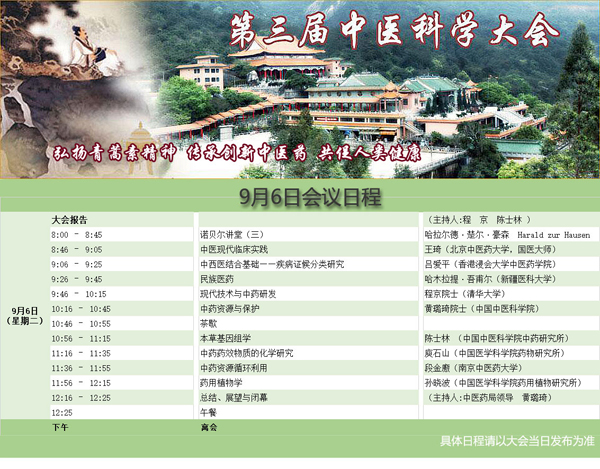 第三屆中醫(yī)科學(xué)大會(huì)日程表(9月6日)