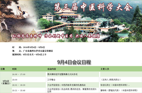 第三屆中醫(yī)科學(xué)大會日程表(9月4日)