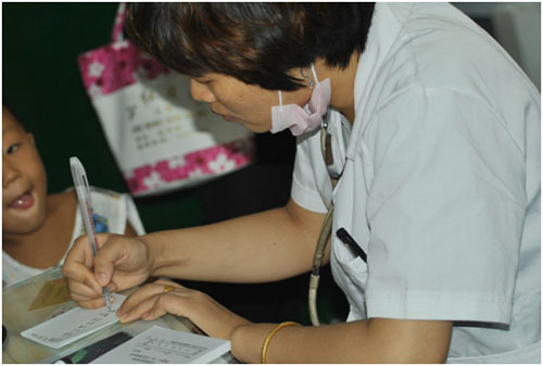 “阿莫西林膠囊,一天吃3此,一次吃1片。鋁碳酸鎂片,飯后一小時(shí)吃,一次2片,一天3次……”陳偉一邊叮囑著患者,一邊用馬克筆在每個(gè)藥盒上寫下服用方法!按謇锢夏耆硕,文化程度不高,視力也不好,他們看說明書可能比較費(fèi)力,寫在藥盒上更清楚,更方便他們吃藥!标悅ジ嬖V記者。