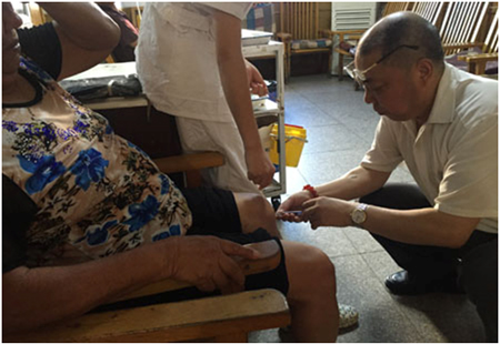 卞其余為膝蓋疼痛的患者實施灌藥治療 盛月 攝