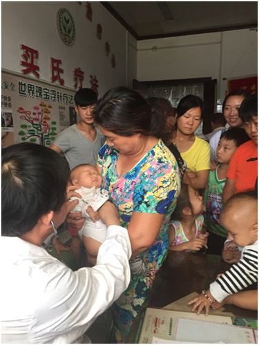 圖為排在診室外等待看病的村民