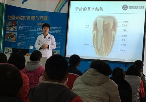 拜博醫(yī)生李玉芳為西柏坡中學(xué)的學(xué)生們講解口腔健康知識