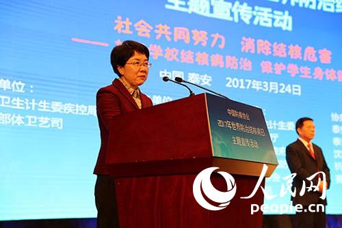 國家衛(wèi)生計生委疾病預防控制局副局長王斌,國家教育部體衛(wèi)藝司司長廖文科巡視員,中國防癆協會副理事長鐘球,副理事長袁政安,副理事長張宗德,秘書長成詩明,山東省衛(wèi)計委左毅副主任,山東省教育廳副廳長張志勇,泰安市人民政府副市長成麗,泰安市衛(wèi)計委主任劉煥星,泰山醫(yī)學院副院長彭春雷等出席了本次活動。王斌和廖文科發(fā)表了主旨講話,成麗致歡迎詞。全國免疫規(guī)劃大使和紅絲帶健康大使鞠萍和全國結核病防治宣傳大使悅悅應邀參加本次活動。