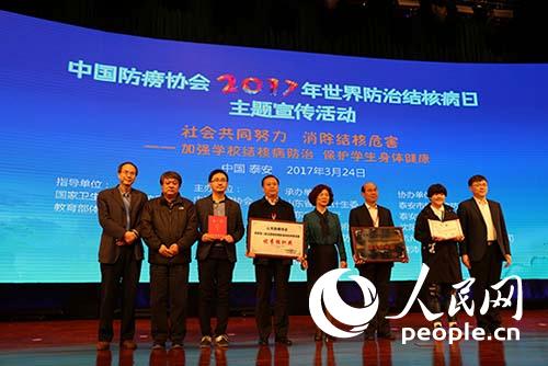人民網北京3月27日電 3月24日是第22個“世界防治結核病日”,由國家衛(wèi)生計生委疾控局、國家教育部體衛(wèi)藝司指導,中國防癆協會主辦,山東省衛(wèi)生計生委、山東省教育廳、泰安市人民政府、山東省結核病防治中心、山東防癆協會、泰山醫(yī)學院等多家單位聯合承辦的以開展校園結核病防治為主題的大型“世界防治結核病日”活動在山東省泰安市成功舉辦,近千人參加了本次活動。