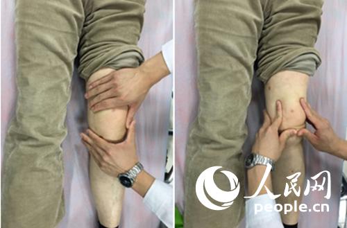 髕骨松動(dòng)手法(左右、上下運(yùn)動(dòng))(“達(dá)醫(yī)曉護(hù)”供圖)