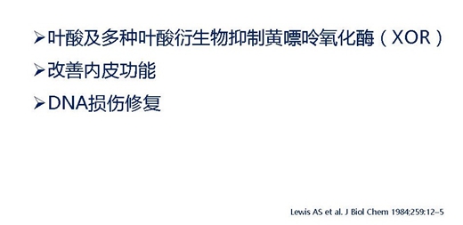 早在1984年Lewis AS等人在J Biol Chem研究稱(chēng),葉酸及多種葉酸衍生物通過(guò)抑制黃嘌呤氧化酶(XOR),改善內(nèi)皮功能,DNA損傷修復(fù)等三種途徑有效降低尿酸濃度。