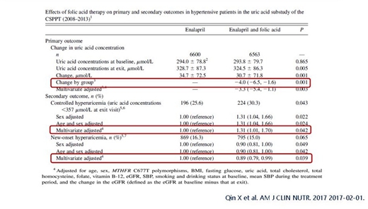 在高血壓人群中探索葉酸治療對(duì)降低血尿酸水平的療效