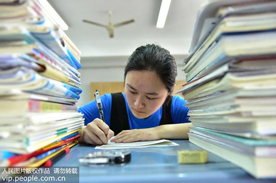 2017年6月1日,安徽省銅陵市第三中學(xué)考生笑對高考,緊張而有序迎接即將到來的高考。(洪偉/人民圖片)