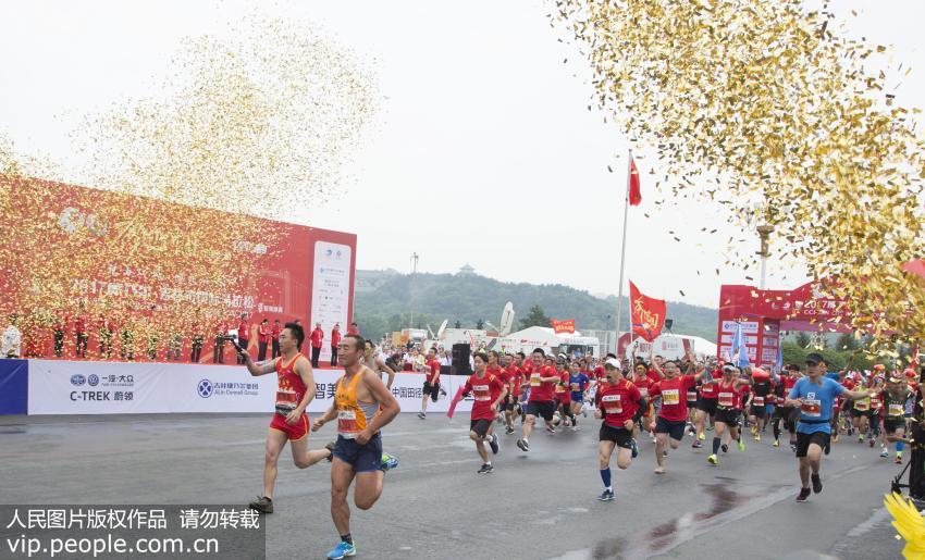 2017年6月25日,運動員們在吉林市人民廣場上開始起跑,競技2017吉林市國際馬拉松賽。(王明銘/人民圖片)
