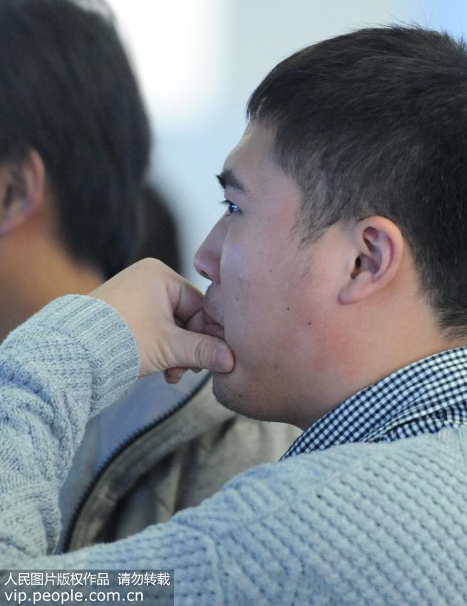 2014年11月8日,在徐州市人力資源服務(wù)中心舉行的高校畢業(yè)生招聘會(huì)上,求職者或渴望、或?qū)Wⅰ⒒蚪箲]、或迷茫,各種表情寫(xiě)在臉上。(孫井賢/人民圖片)