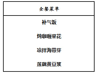 PS:“全餐”指導(dǎo)的是午餐和晚餐,而早餐建議一份有機精力湯即可。