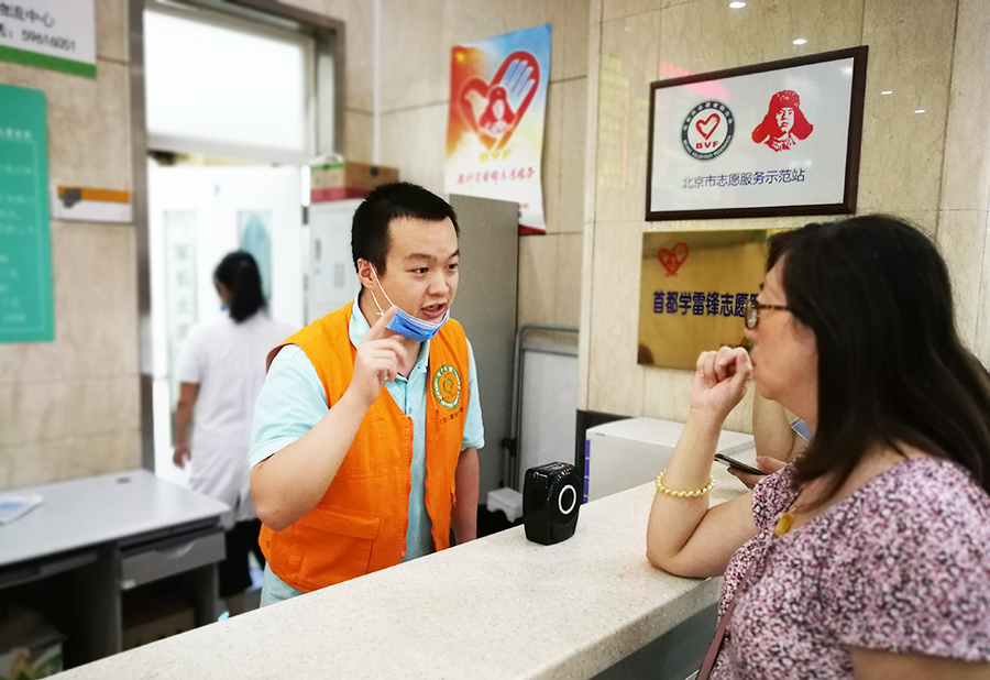 為了提升接診服務能力,保障患者權(quán)益,維護良好的醫(yī)患關(guān)系,志愿者們紛紛加入兒童醫(yī)院的志愿者服務部,協(xié)助醫(yī)護人員提供就醫(yī)流程、科室指引等咨詢服務。這個炎熱的暑假,來到兒童醫(yī)院,隨時都能看到身穿橘色馬甲的青年人在為小患者和家屬提供熱情服務的身影!笆刈o天使志愿者”已成為暑假期間兒童醫(yī)院的一道亮眼風景。