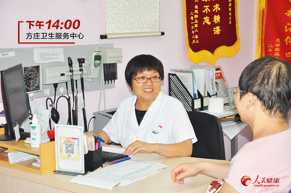 方莊社區(qū)衛(wèi)生服務(wù)中心診室內(nèi),醫(yī)生葛彩英正在接診/尹莉娜攝