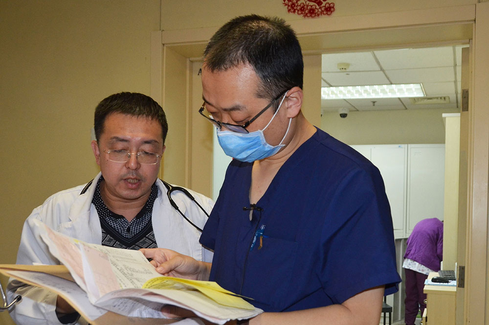 從26歲起,袁偉就在朝陽醫(yī)院急診科值班,從一線干到三線,現(xiàn)在他是一名副主任醫(yī)師。為了方便搶救,一套藍(lán)色短袖工服替換了原來的白大褂,揣在兜里的患者信息單子,被反復(fù)翻閱得已經(jīng)破損。