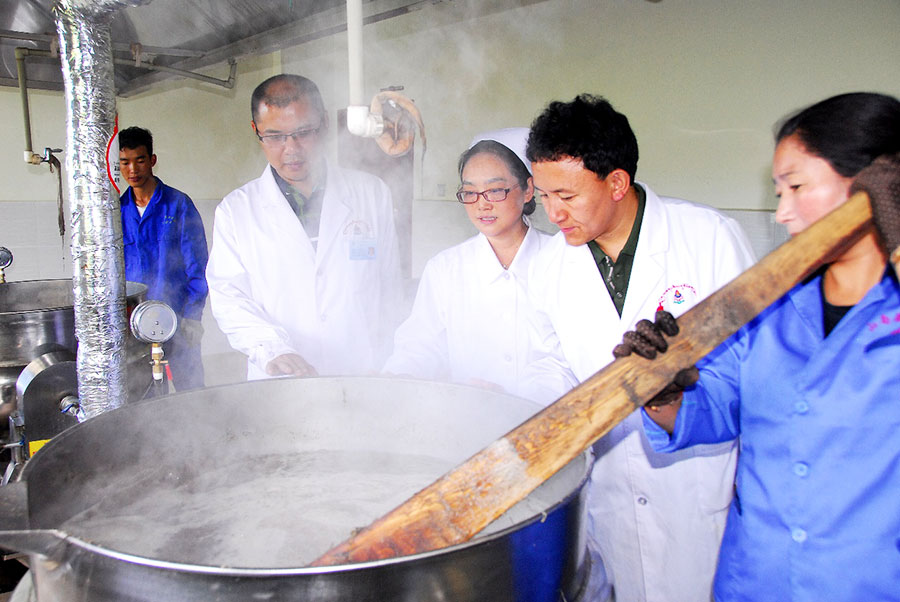 藏醫(yī)特色藥浴湯汁熬制 資料圖