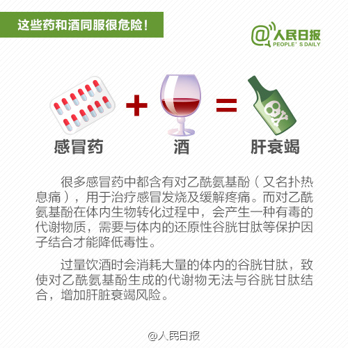 在服用藥品之前,請(qǐng)您一定要認(rèn)真閱讀藥品說明書并嚴(yán)格按說明書執(zhí)行。如果您拿不準(zhǔn)正在服用的藥物是否會(huì)與酒精反應(yīng),就請(qǐng)拒絕飲酒吧。▓D/@人民日?qǐng)?bào)微博)