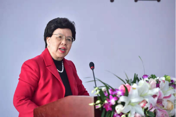 圖片說明:世界衛(wèi)生組織原總干事陳馮富珍致辭
