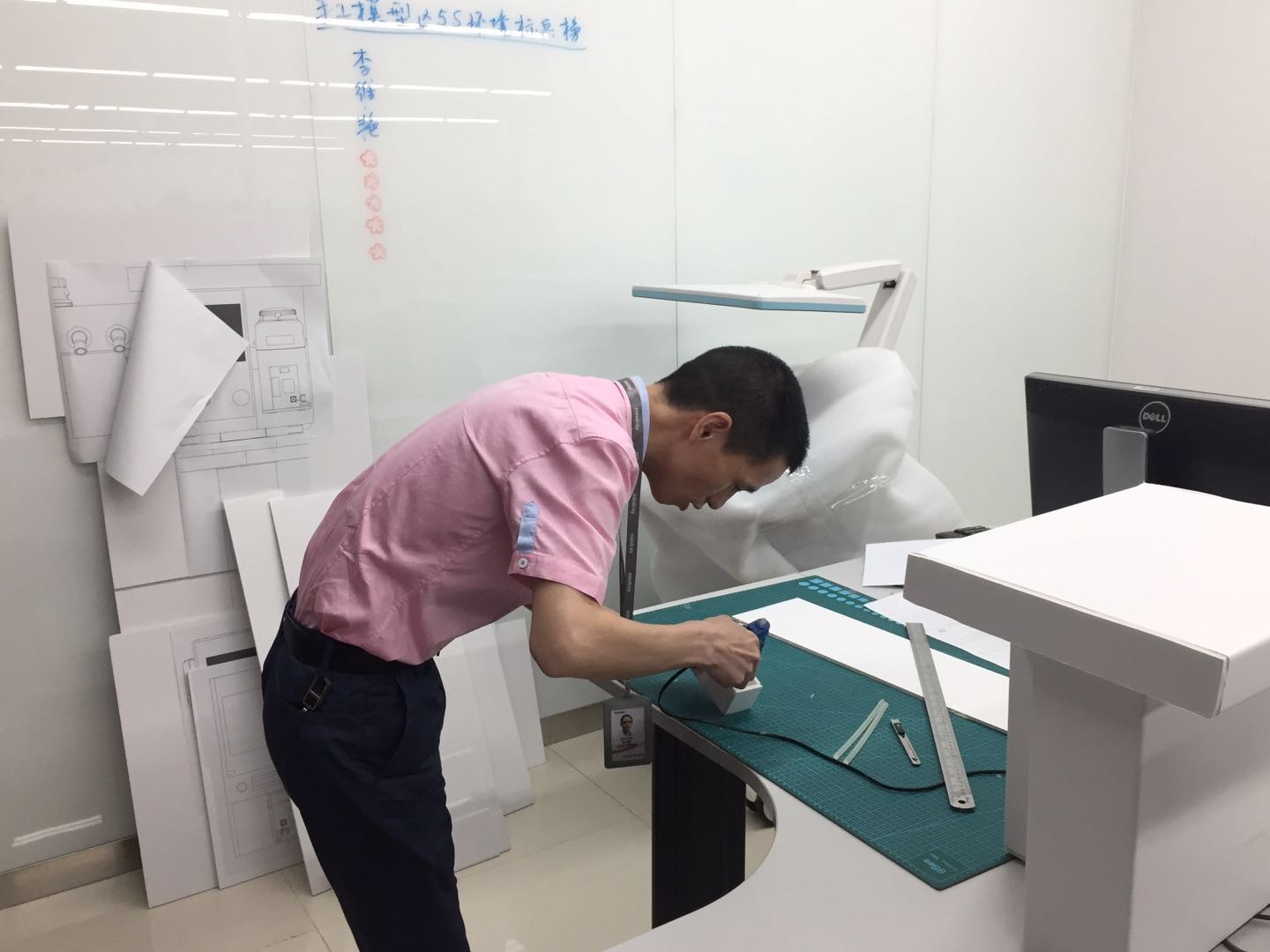 在邁瑞總部大廈2層設(shè)計(jì)中心的辦公區(qū)內(nèi),設(shè)計(jì)師柴海波正在仔細(xì)地打磨一款產(chǎn)品的草模,這是醫(yī)療產(chǎn)品工業(yè)設(shè)計(jì)中驗(yàn)證設(shè)計(jì)概念的重要環(huán)節(jié)。由工業(yè)設(shè)計(jì)師們?cè)O(shè)計(jì)完成的概念原型,集成了戰(zhàn)略、市場(chǎng)、臨床及研發(fā)等多方智慧,最終將成為一臺(tái)臺(tái)醫(yī)療器械設(shè)備,走進(jìn)世界各地的各類醫(yī)療機(jī)構(gòu),去完成它們的使命。