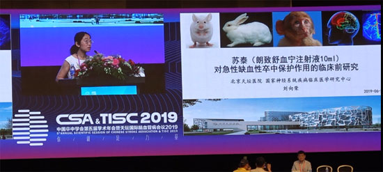 此次會(huì)議國(guó)內(nèi)外專(zhuān)家、學(xué)者們分享的各類(lèi)學(xué)科前沿進(jìn)展及行業(yè)熱點(diǎn)知識(shí),成為大會(huì)亮點(diǎn),一些參會(huì)企業(yè)帶來(lái)的腦卒中治療領(lǐng)域創(chuàng)新產(chǎn)品、最新研究進(jìn)展,也引人矚目。29日中午,在由首都醫(yī)科大學(xué)附屬北京天壇醫(yī)院神經(jīng)病學(xué)中心主任、黨總支部書(shū)記趙性泉教授擔(dān)任主持,首都醫(yī)科大學(xué)附屬天壇醫(yī)院劉向榮教授擔(dān)任講者的“朗致集團(tuán)蘇泰衛(wèi)星會(huì)”上,劉向榮教授分享的《蘇泰對(duì)急性缺血性卒中保護(hù)作用的研究》專(zhuān)題報(bào)告?zhèn)涫荜P(guān)注。