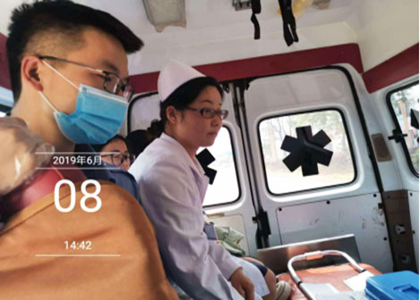 沾益區(qū)人民醫(yī)院心內(nèi)科崔永仙主任看到首份心電圖提示:“急性下壁ST段抬高型心肌梗死”,立即指導(dǎo)播樂衛(wèi)生院接診醫(yī)師排除雙抗禁忌后給予患者雙抗治療,如家屬同意手術(shù),立即轉(zhuǎn)曲靖市第一人民醫(yī)院急診手術(shù)。就在此時,播樂衛(wèi)生院救護車外出護送急性顱腦損傷患者,需要沾益區(qū)急救中心120救護車接診該患者,但問題出現(xiàn)了:沾益區(qū)人民醫(yī)院距離播樂鄉(xiāng)單邊路程59公里,路況較差需要1小時30分左右才能到達,且播樂衛(wèi)生院無溶栓及搶救藥品,對于急性心梗患者時間就是心肌,時間就是生命,每耽誤一分鐘心肌細胞就不斷有死亡,為最大縮短心肌總?cè)毖獣r間,搶救更多心肌,挽救病人生命。沾益區(qū)人民醫(yī)院崔永仙主任、李梅副主任果斷決定帶上急救藥品和設(shè)備親自趕往播樂衛(wèi)生院接診患者。