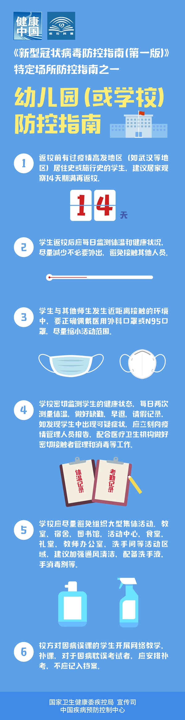 《新型冠狀病毒防控指南(第一版)》特定場(chǎng)所防控指南之一:幼兒園(或?qū)W校)防控指南
