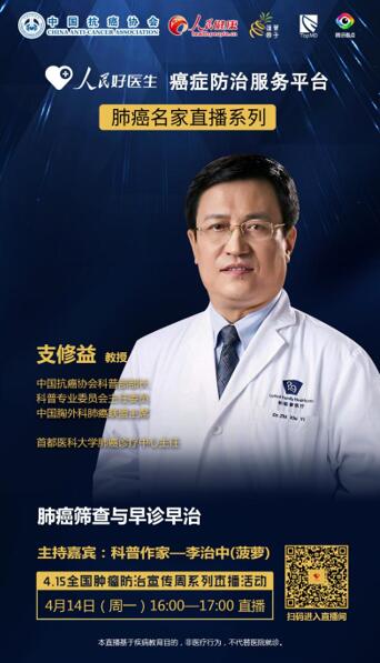 在臨床中,肺癌的篩查有哪些常用手段,早期肺癌診斷的標準如何?怎樣才能確保做到“三早”呢?2020年4月14日(周二)16:00,人民好醫(yī)生客戶端將邀請中國抗癌協(xié)會科普部部長、首都醫(yī)科大學(xué)肺癌診療中心主任支修益教授進行視頻訪談,在線科普“肺癌的篩查與早診早治”。