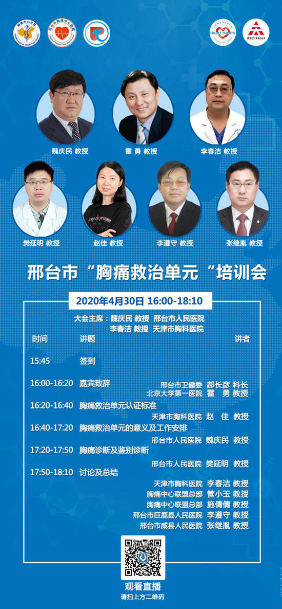 4月30日,“心健康公益行動”系列活動之河北邢臺市“胸痛救治單元”全國首場培訓會在線上舉行。線上觀看人數達7600多人次。