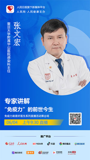 2020年6月4日(周四)上午9:30,人民日報(bào)社旗下新媒體“人民好醫(yī)生”客戶端將邀請復(fù)旦大學(xué)附屬華山醫(yī)院感染科主任張文宏教授進(jìn)行視頻訪談,與大家在線分享免疫力的發(fā)展和其重要性。