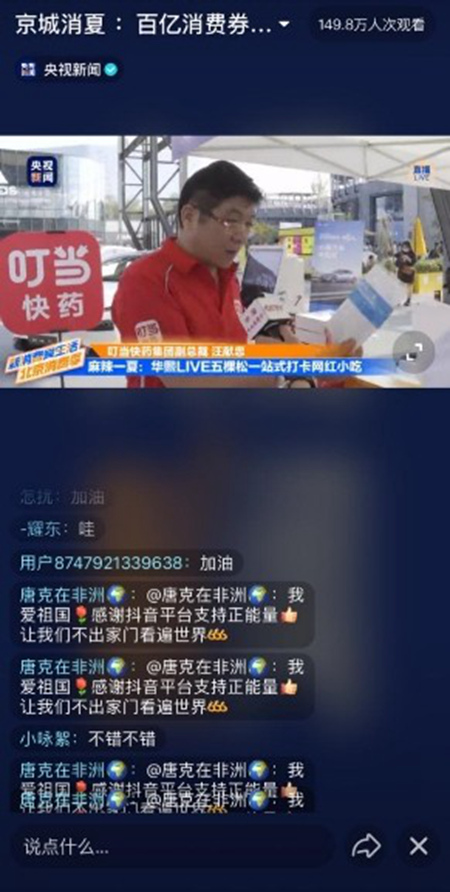 叮當(dāng)快藥副總裁汪獻(xiàn)忠受邀參加央視新聞直播采訪,向央視新聞客戶端、微博、抖音、快手五大平臺(tái)用戶介紹叮當(dāng)快藥發(fā)放健康消費(fèi)券、醫(yī)用口罩1元購以及慢病藥直降價(jià)三大惠民措施,累計(jì)超過528萬粉絲在線圍觀、互動(dòng)。
