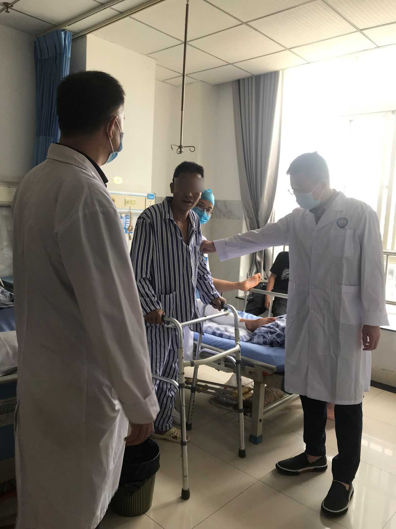 手術(shù)完成4小時(shí)后,俸先生已經(jīng)可以在助行器幫助下獨(dú)立行走 圖片來(lái)源:武漢協(xié)和醫(yī)院