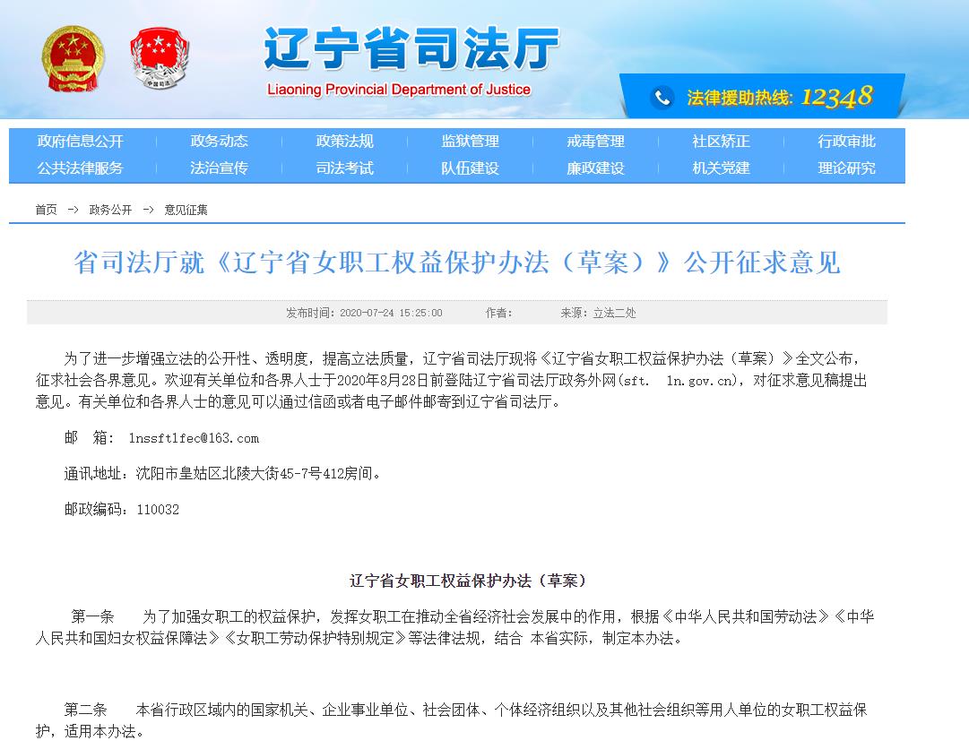 日前,遼寧省司法廳就《遼寧省女職工權(quán)益保護辦法(草案)》向社會公開征求意見。草案結(jié)合遼寧實際,主要從女職工權(quán)益保護工作的職責(zé)分工、組織管理、女職工“五期”(經(jīng)期、孕期、產(chǎn)期、哺乳期和更年期)保護、普法維權(quán)、獎勵與處罰等方面作出具體規(guī)定。