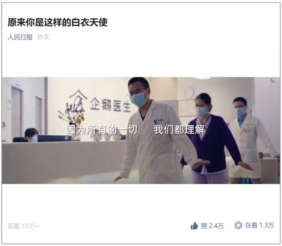 8月19日,中國(guó)醫(yī)師節(jié),一部《醫(yī)生朋友,一生朋友》醫(yī)師節(jié)獻(xiàn)禮片,在人民日?qǐng)?bào)、中國(guó)新聞周刊、頭條新聞等主流媒體渠道上線。