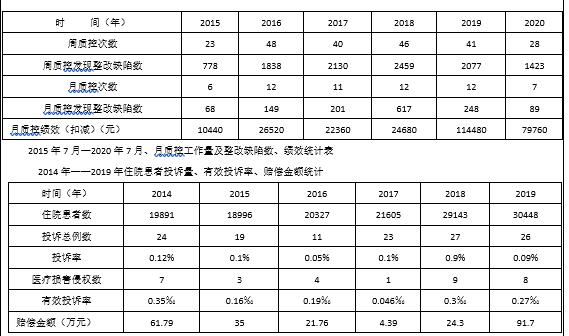 據(jù)該醫(yī)院工作人員介紹,該醫(yī)院三級(jí)質(zhì)控體系運(yùn)行5年來(lái),醫(yī)生對(duì)質(zhì)量控制的理解、認(rèn)識(shí)、態(tài)度明顯改善,質(zhì)控理念深入人心,同時(shí),質(zhì)控員輪值制使一線骨干醫(yī)生經(jīng)歷了質(zhì)控培訓(xùn)、質(zhì)控檢查、科間學(xué)習(xí)等過(guò)程,他們的職業(yè)素質(zhì)得到明顯提升。醫(yī)生的質(zhì)控觀念明顯加強(qiáng)。密集的日、周質(zhì)控,在時(shí)間面上形成廣泛覆蓋,保證了病歷完成時(shí)效性,月質(zhì)控和質(zhì)控員的績(jī)效管理,讓臨床醫(yī)生時(shí)刻保持質(zhì)量控制警覺(jué)。質(zhì)控理念深入每一名醫(yī)生心中,在質(zhì)控約束下工作成為習(xí)慣。質(zhì)控避免了一些醫(yī)療缺陷的發(fā)生。質(zhì)控前移到環(huán)節(jié)質(zhì)量控制,使缺陷早期被發(fā)現(xiàn)、整改,形成了缺陷導(dǎo)向的醫(yī)療質(zhì)量管理。質(zhì)控工作提升了全體醫(yī)生的綜合職業(yè)素質(zhì)。實(shí)行三級(jí)質(zhì)控以來(lái),已有68名醫(yī)生輪流擔(dān)任質(zhì)控員,占全部一線醫(yī)生34.51%,他們都經(jīng)歷了質(zhì)控培訓(xùn)、質(zhì)控檢查、反饋整改、科間學(xué)習(xí)等過(guò)程,職業(yè)素質(zhì)得到明顯提升。質(zhì)控效果體現(xiàn)在醫(yī)療投訴上,醫(yī)療投訴事件逐年減少,有效投訴事件及賠償大幅下降,遠(yuǎn)低于全國(guó)平均水平