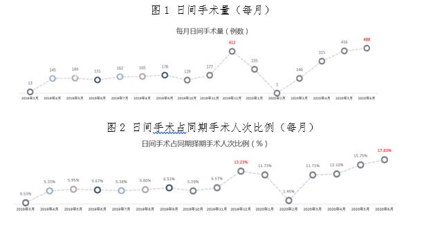 據(jù)該院工人員介紹,2020年新冠疫情期間在3月份復(fù)工復(fù)產(chǎn)重啟之后,行政MDT管理模式為日間手術(shù)運(yùn)營的快速恢復(fù)提供了高效有力的保障。6月份日間手術(shù)量達(dá)到488例,日間手術(shù)占擇期手術(shù)比例占17.83%,達(dá)到了該項(xiàng)目開展以來的第二個(gè)小高峰。醫(yī)院平均住院日(6.35天)、術(shù)前平均住院日(2.2天)均呈現(xiàn)持續(xù)下降趨勢。在PDCA有效管控下,我們比較了開展日間手術(shù)前后的年度數(shù)據(jù),以及開展日間手術(shù)后2019年10個(gè)月與2020年5個(gè)月分期數(shù)據(jù),各項(xiàng)醫(yī)療業(yè)務(wù)指標(biāo)和服務(wù)指標(biāo)持續(xù)改善。