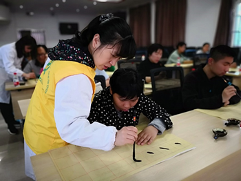 為了提高社區(qū)康復(fù)員的文化修養(yǎng),滿足他們的藝術(shù)需求,充分發(fā)揮藝術(shù)對于康復(fù)的重要作用,“心語心愿薈”項目不斷創(chuàng)新引領(lǐng),創(chuàng)辦了“墨韻飄清香”書法社團。指導(dǎo)老師帶領(lǐng)康復(fù)學(xué)員們認識書法藝術(shù),學(xué)習(xí)先賢之道,提升欣賞水平,培養(yǎng)審美情趣。學(xué)員們認真創(chuàng)作,互相點評,大大提升了學(xué)習(xí)熱情及書法水平,創(chuàng)作出了一幅幅帶有溫度,充滿情懷的作品。通過書法社團的成立,展現(xiàn)了藝術(shù)治療服務(wù)患者,滋養(yǎng)精神的積極作用,為康復(fù)員的康復(fù)之路添上濃墨重彩的一筆。截止目前,共開展書法活動4次,服務(wù)88人次。