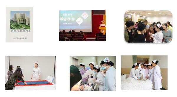 經(jīng)過多年的臨床實踐改進和創(chuàng)新,我院骨科在創(chuàng)傷骨科護理技術(shù)(封閉式骨牽引針孔護理技術(shù)、骨折患者搬運技術(shù)、特殊治療體位護理技術(shù)、肢體血運監(jiān)測技術(shù)等)方面,形成了規(guī)范的操作流程并研發(fā)了專業(yè)護理用具,在臨床應(yīng)用中取得良好的效果。由于醫(yī)療資源緊張和住院時間短,為保證術(shù)后轉(zhuǎn)診到一、二級醫(yī)院的骨科患者接受與三級醫(yī)院同等水平的骨科護理。本團隊在申康發(fā)展中心的支持下,旨在將創(chuàng)傷骨科護理技術(shù)(四項技術(shù))在上海市八家合作醫(yī)院進行培訓(xùn)和推廣。