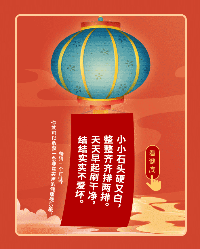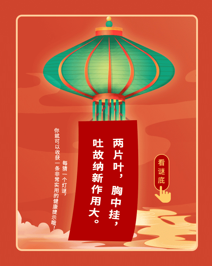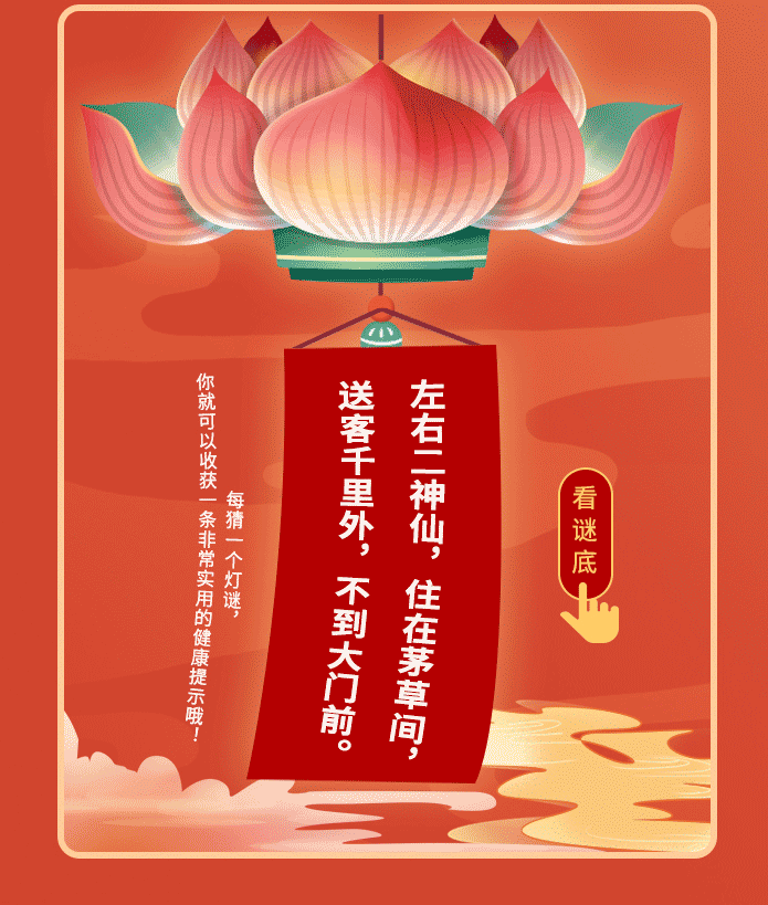 “猜燈謎”又叫“打燈謎”,是一項(xiàng)妙趣橫生的游藝活動(dòng)。今天又迎來(lái)了正月十五元宵佳節(jié),鬧花燈怎能少了猜謎環(huán)節(jié)?為此,小編特別為大家準(zhǔn)備了線上猜燈謎互動(dòng)小游戲。別小看這些燈謎,它們可不簡(jiǎn)單,每個(gè)謎語(yǔ)都與人們的身體、健康息息相關(guān),讓我們一起在樂(lè)趣中探索2021年健康生活的密碼吧!