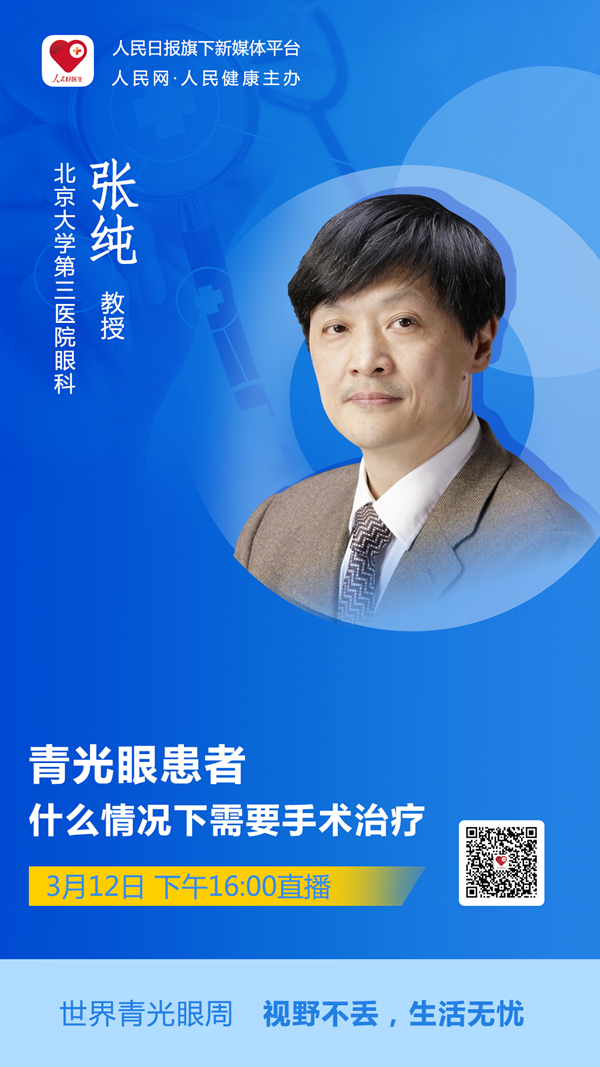 2021年03月12日(周五)下午16:00,“人民好醫(yī)生”客戶端將邀請北京大學(xué)第三醫(yī)院眼科主任醫(yī)師張純進(jìn)行視頻和圖文直播,結(jié)合青光眼的特點(diǎn),為大家在線科普如何盡早發(fā)現(xiàn)和規(guī)范治療這個疾病,并在線解答廣大網(wǎng)友相關(guān)問題,千萬不要錯過。