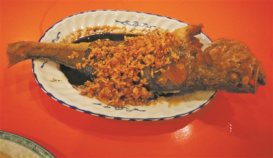 豉油糖炸黃花魚是雅苑的招牌菜,幾乎每桌必點(diǎn),外皮酥脆、內(nèi)里細(xì)嫩,碟底的醬油以及鋪滿魚身的炸蒜粒都令其風(fēng)味更為獨(dú)特。