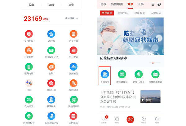 “學(xué)習(xí)強(qiáng)國”上線“強(qiáng)國醫(yī)生”功能 就醫(yī)問診更方便